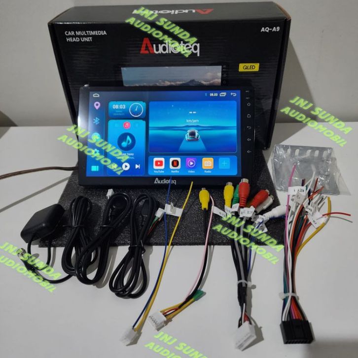 head unit android 9 inch audioteq ram 2 gb + rom 64 gb layar Qled apple carplay android auto