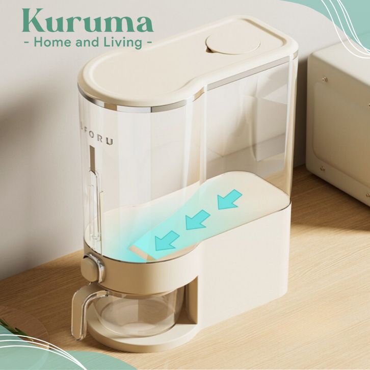KURUMA - KEITAI Kontainer Beras 5 KG Minimalis Wadah Simpan Rice 10 KG Premium Penyimpanan Praktis