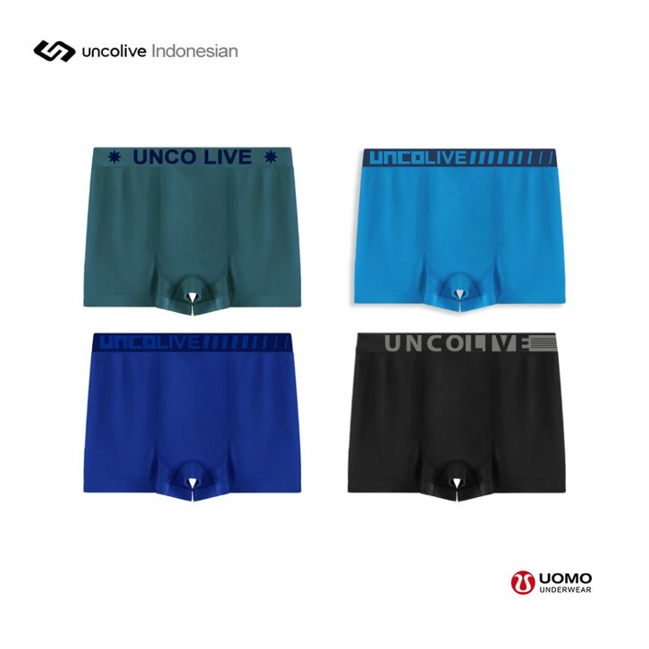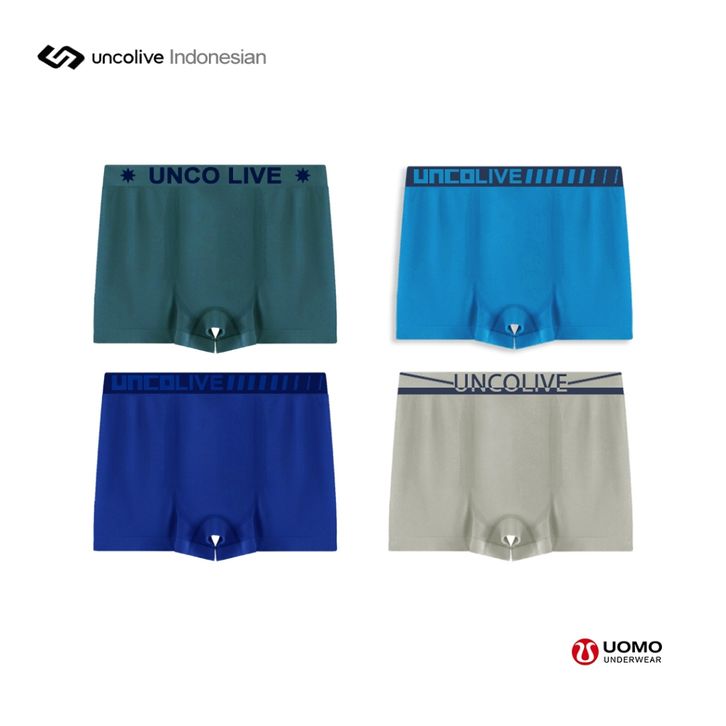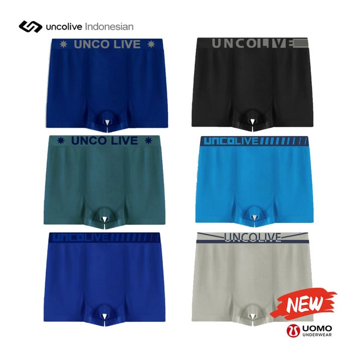 【beli 49ratis 2】UNCOOLIVE Celana Boxer Mulus Pria Padat Elastisitas Tinggi Celana Dalam 12PCS Warna Polos