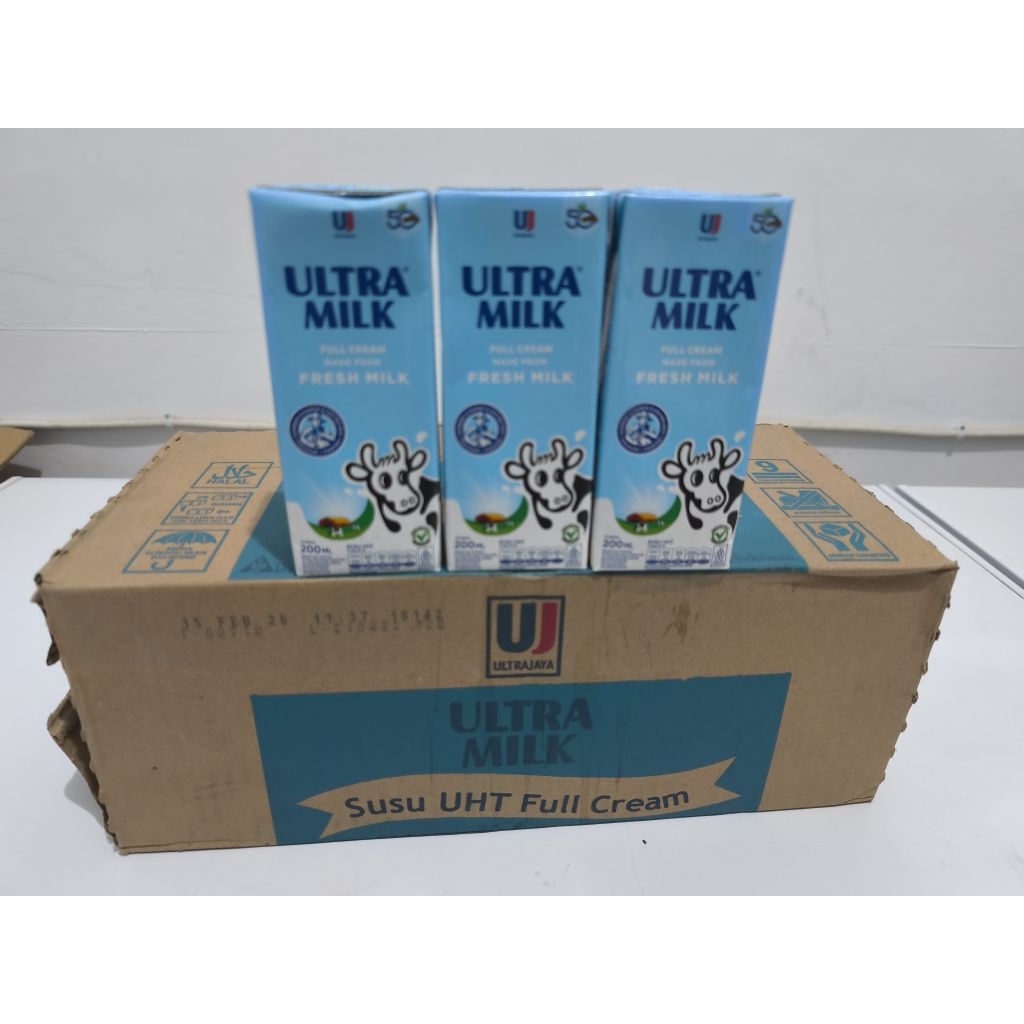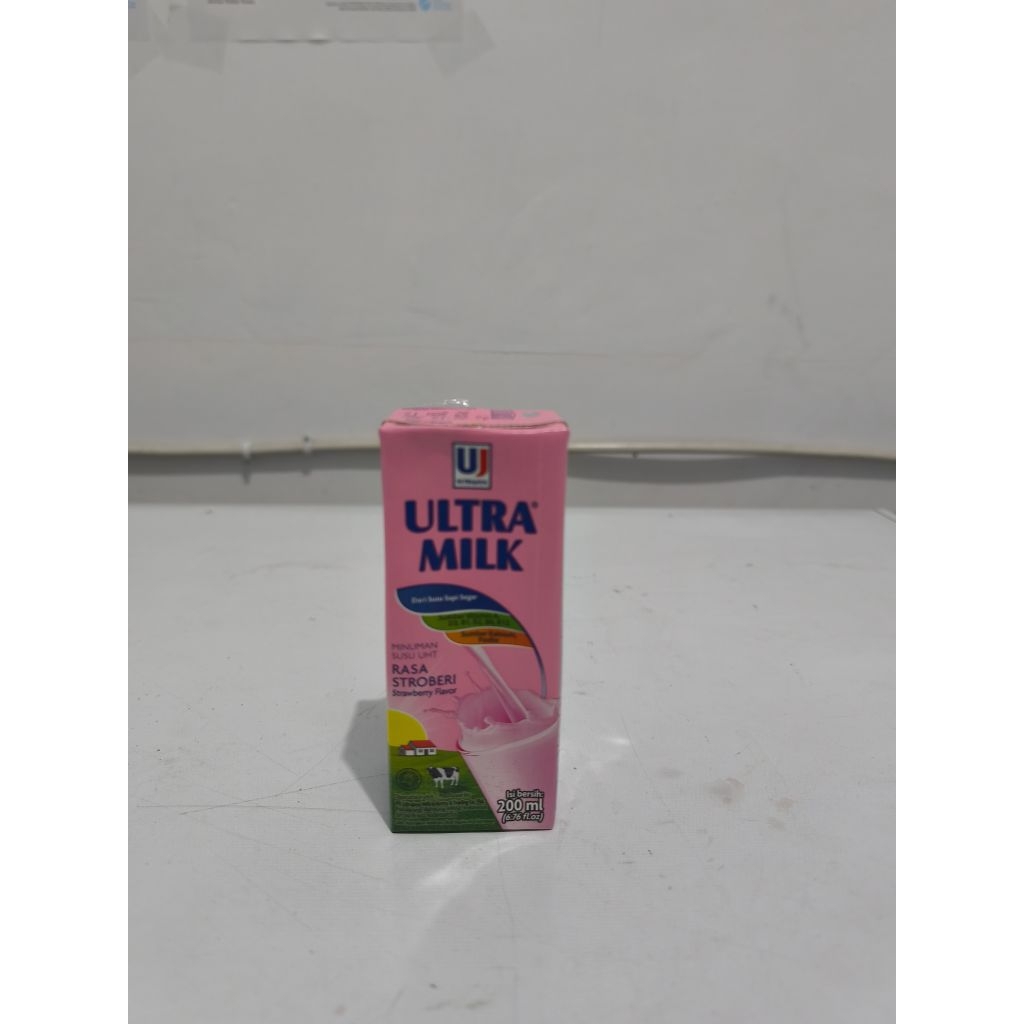 Halal | Susu Ultra Milk UHT 200 ml 1 karton isi 24 pcs ras coklat full cream Strawberry