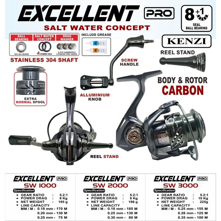 Reel Kenzi Excellent Pro Sw with Reel Stand and Extra Spool 1000 2000 3000 Spinning