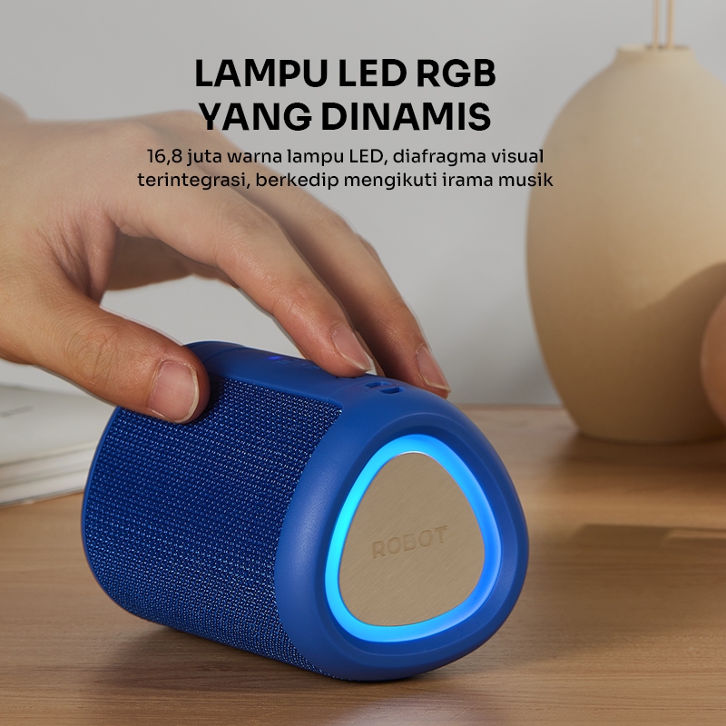 [FOR LIVE]ROBOT RB120 Bluetooth Speaker – Bass Kencang, RGB Light, TWS Stereo, IPX4, BT 5.3, 1200mAh, Garansi Resmi 1 Ta
