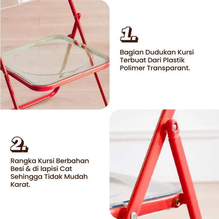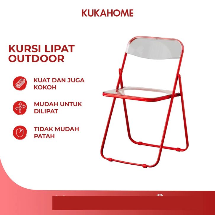 KUKAHOME Kursi Lipat Outdoor Kursi Plastik Minimalis Model Transparan Kursi Caffe Foldable Chair
