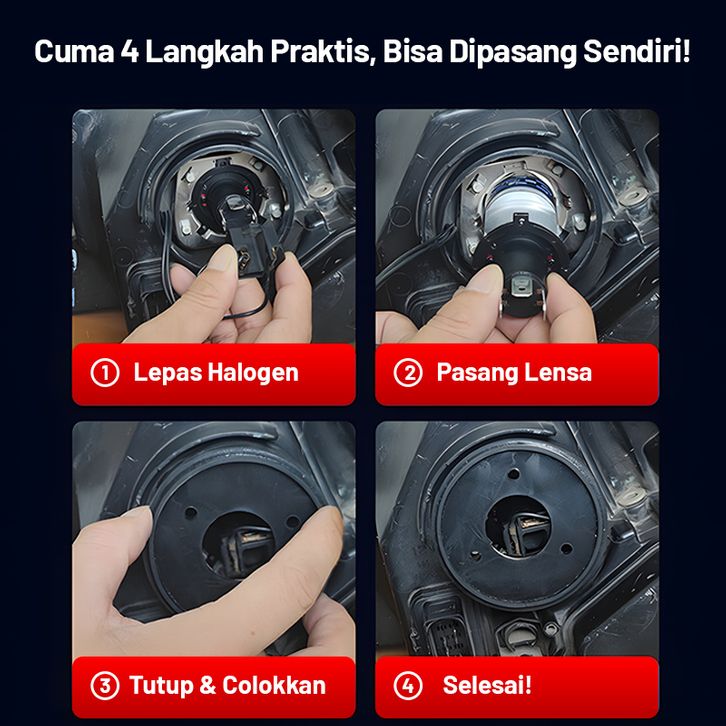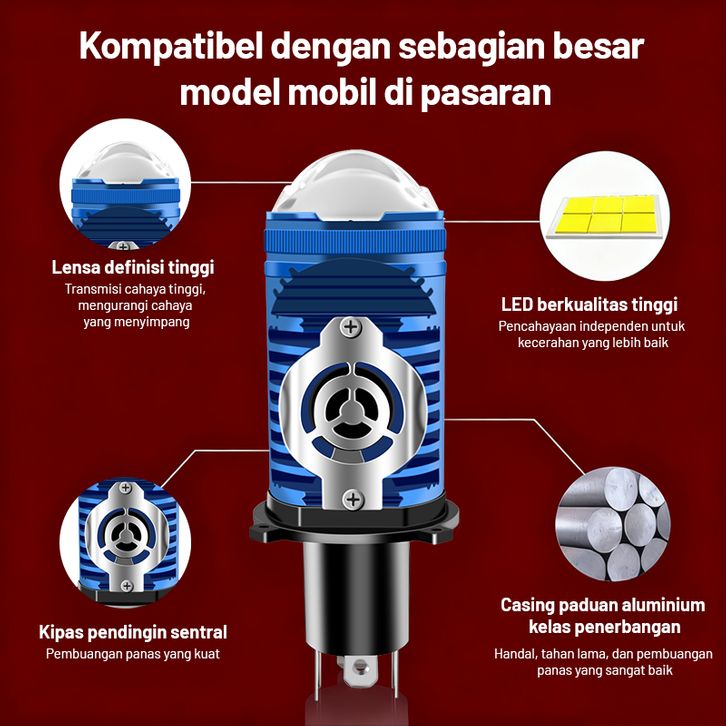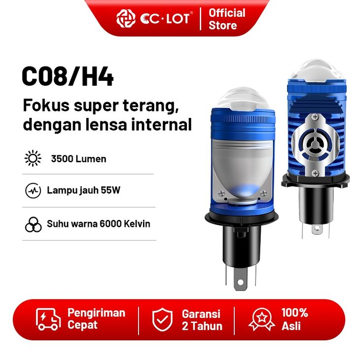 Lampu LED Motor Seri C08 Lampu Led Projector H4 Lampu Depan Sepeda Motor 55Watt Lampu H4 Super Terang Khusus Malam
