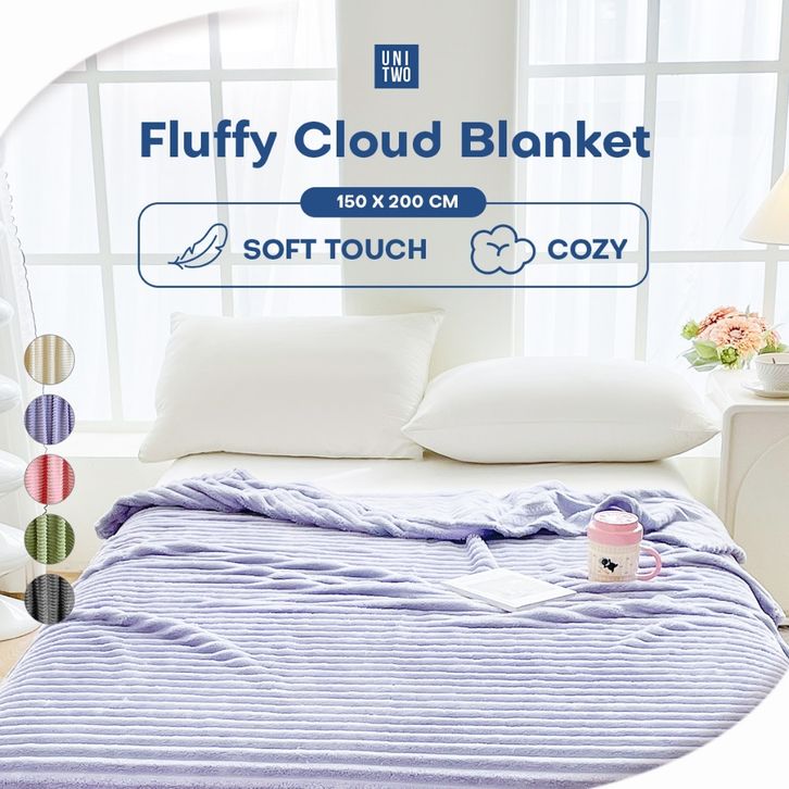 UNITWO PREMIUM [BLANKET/SELIMUT ONLY] FLUFFY CLOUD BLANKET Selimut Warna Pastel Modern Minimalis, Estetik, Lembut,
