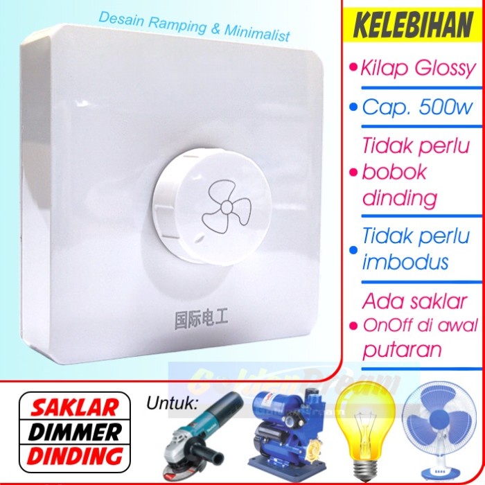Saklar Dimmer Dinding Lampu Kipas Pompa Gerinda Tembok AC 220v 500w