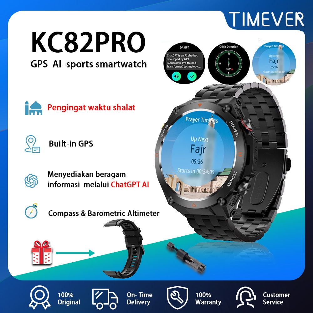 TIMEVER KC82PRO AI chatGPT Adzan Reminder Muslim GPS Jam Tangan bluetooth call smartwatch ketinggian tekanan udara dan k