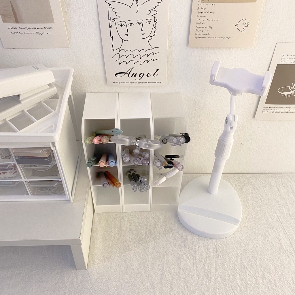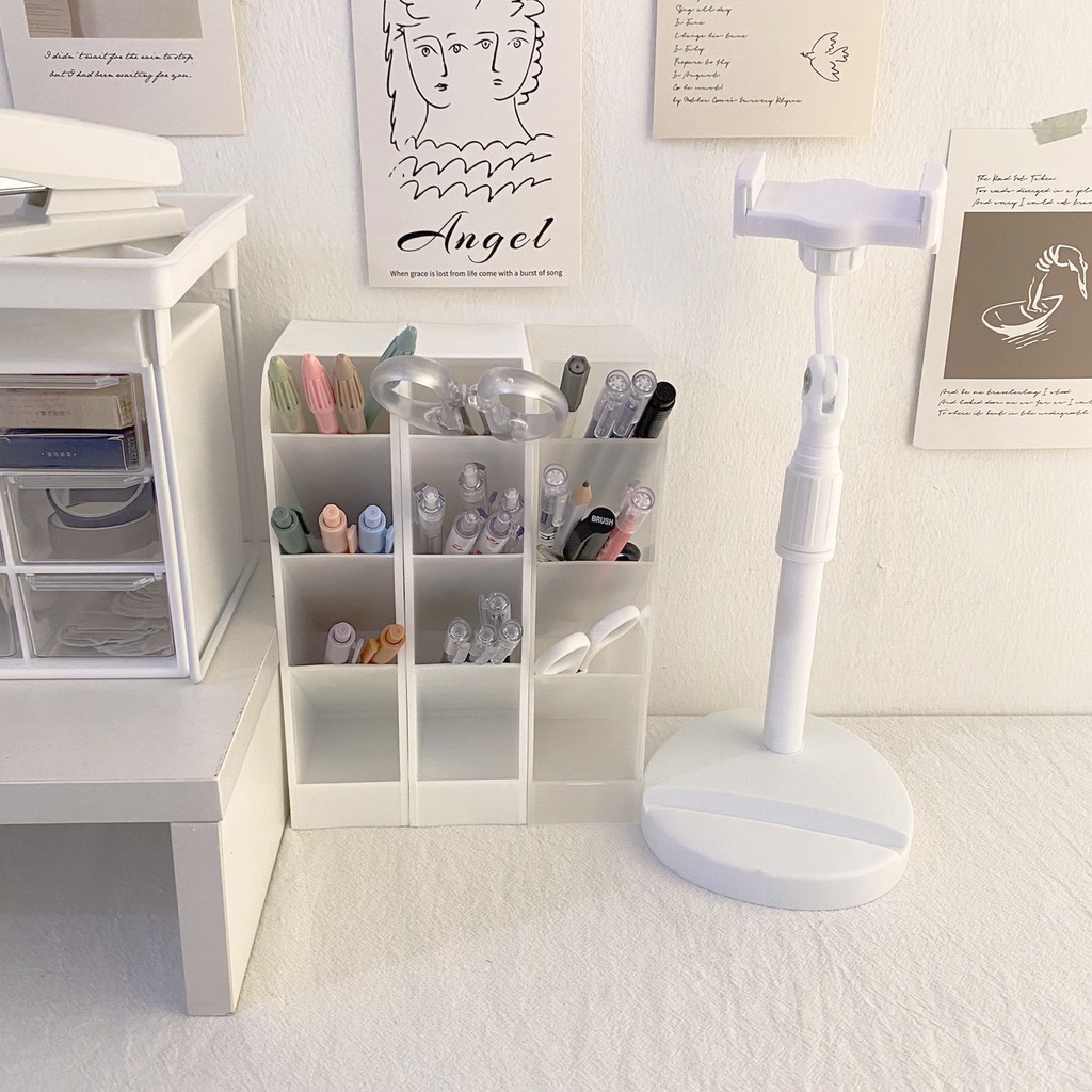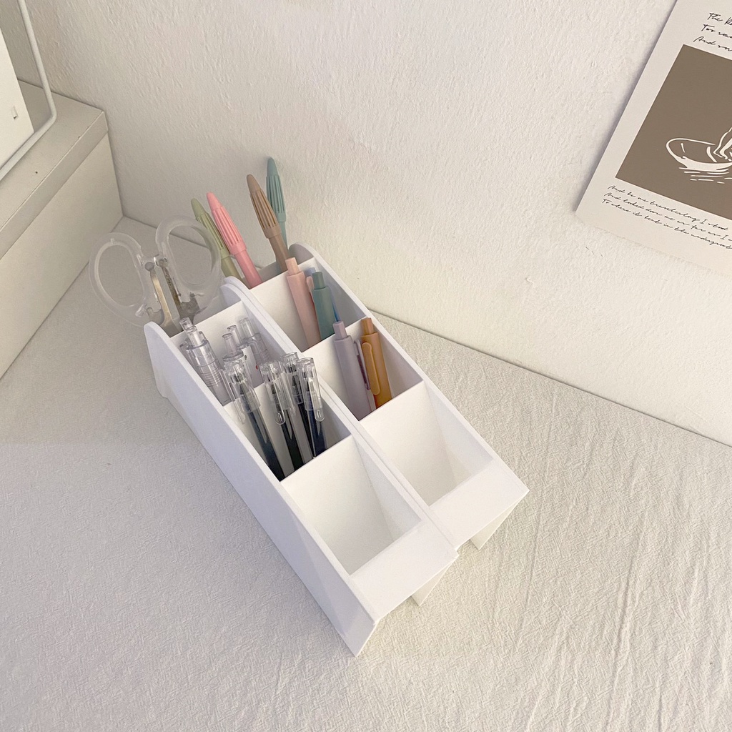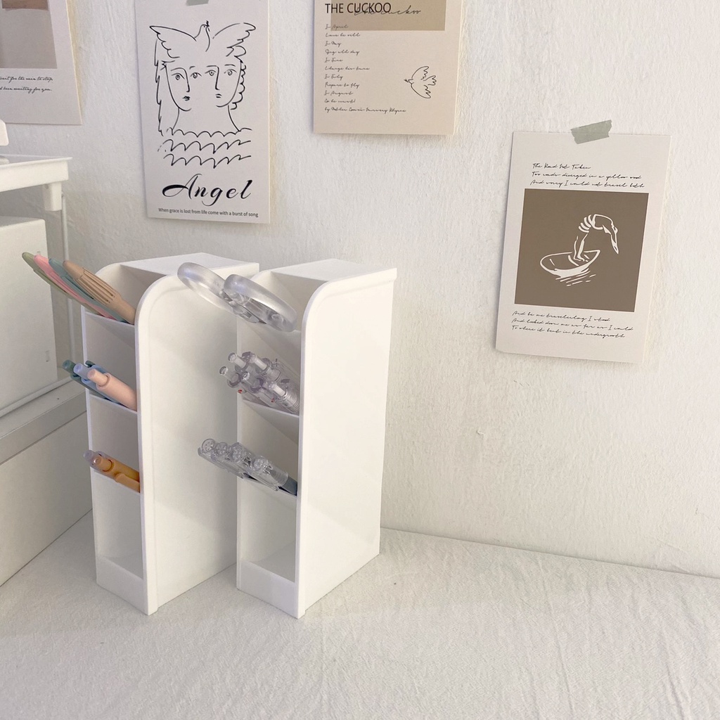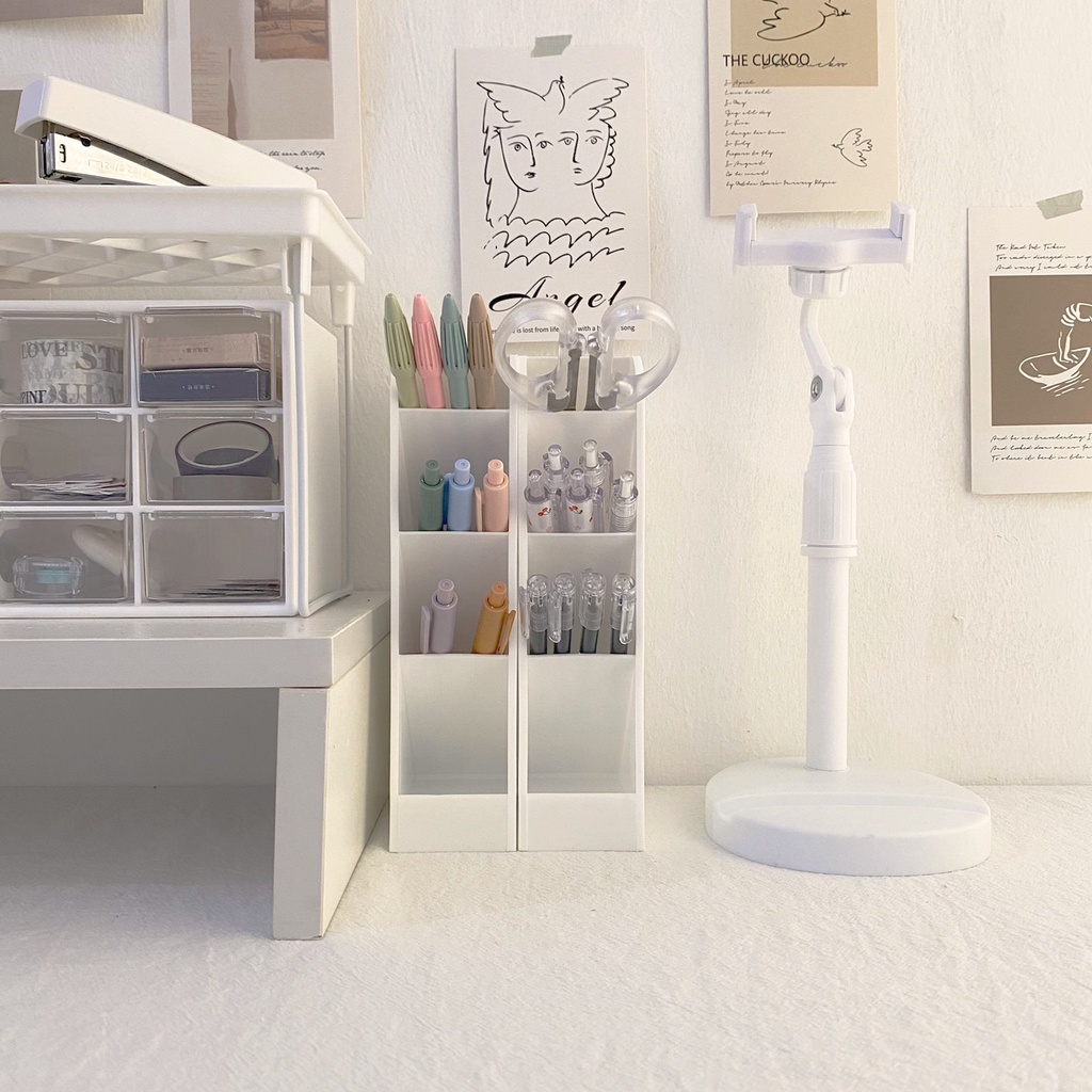 [MILOLI] 3 Slot White Pen Holder Desktop Pencil Storage Box Organizer Kotak Pensil Tabung Pena - F0144