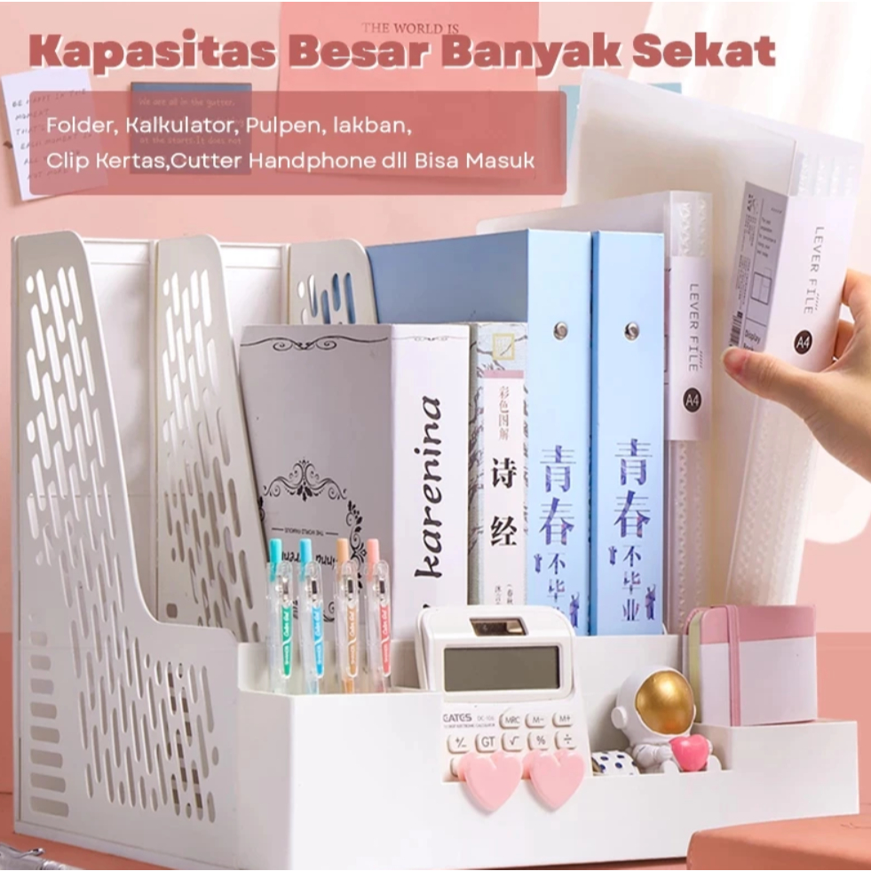 Rak Buku Sekat Minimalis/Rak File Susun/Desk Organizer/Rak Penyimpanan Perlengkapan Kantor Sekolah