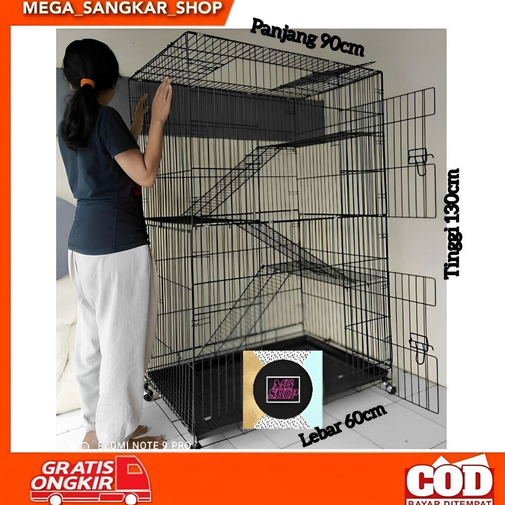 Kandang Kucing Jumbo Ukuran T.130xL.60xP.90cm Size XXXL, Murah kualitas terjamin MGshop