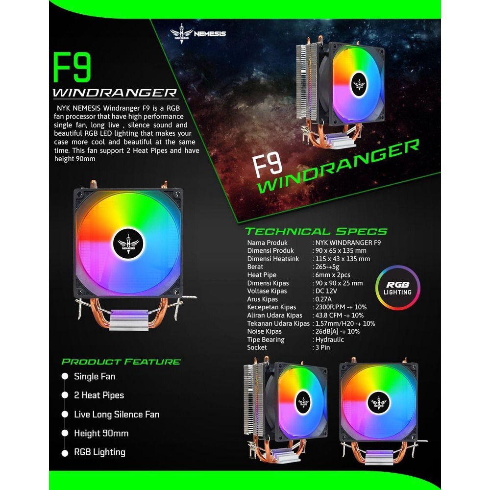 [Mall] FAN PROCESSOR RGB HEATSING CPU WINDRANGER F9 FAN PROCESSOR TOWER 9CM SINGLE FAN RGB NYK NEMESIS