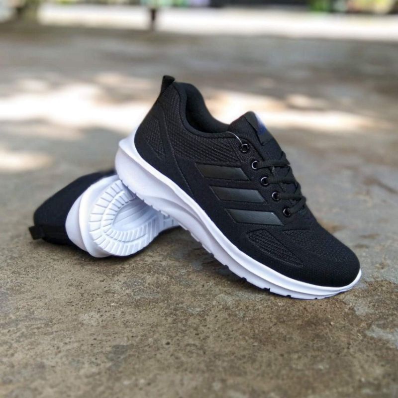 Sepatu Sekolah Hitam Putih Hitam Polos Pria Wanita / Sepatu Sneakers Sekolah