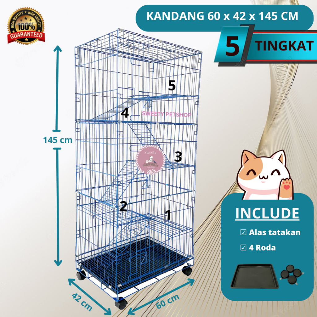 KANDANG KUCING 5 TINGKAT UKURAN 60X42X145 CM KANDANG LEBIH TINGGI DAN NYAMAN