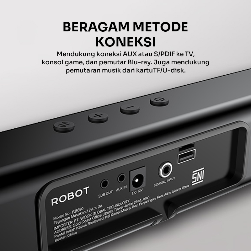ROBOT Speaker Soundbar Home Theater 30W Bluetooth 5.4 Speaker TV Super Bass Bluetooth 5.4 Subwoofer RB690 Original - Gar