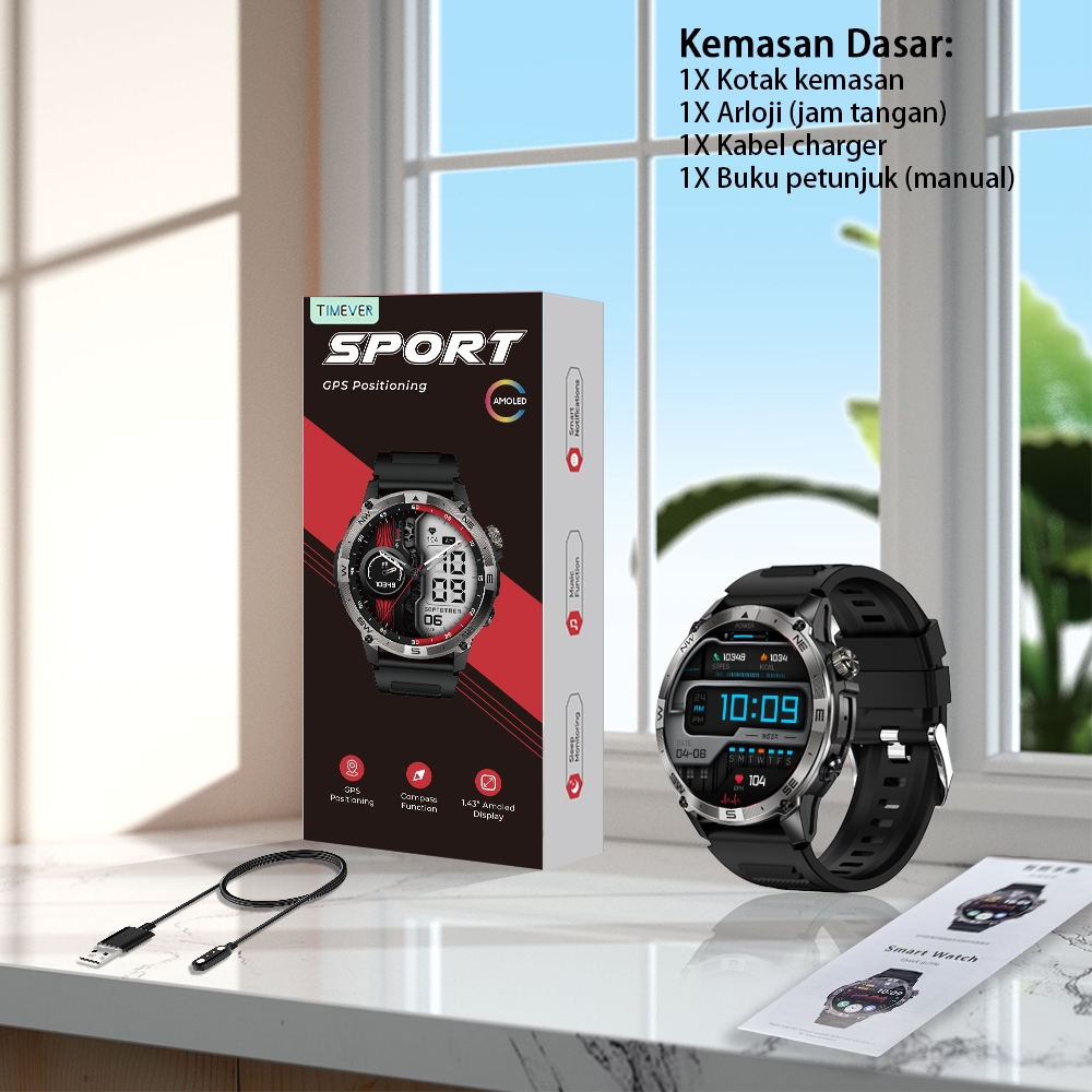 TIMEVER TR1 Built-in GPS SE Layar AOD smartwatch navi jam tangan pintar tahan air 3ATM NFC watch jam tangan militer keti