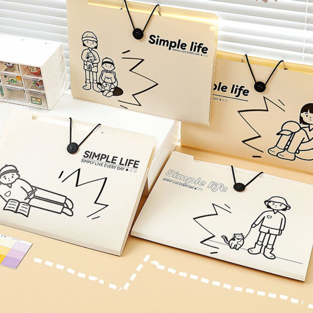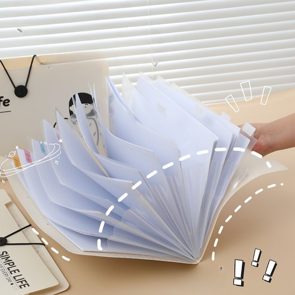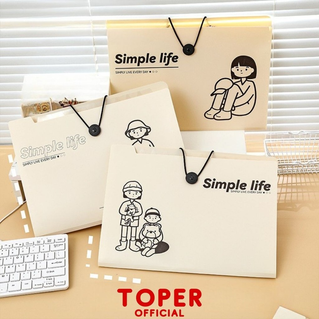 TOPER Tas File A4 8 dan 12 Sekat Index Cute Document Bag Map Folder Organizer Index Expanding Simple Life