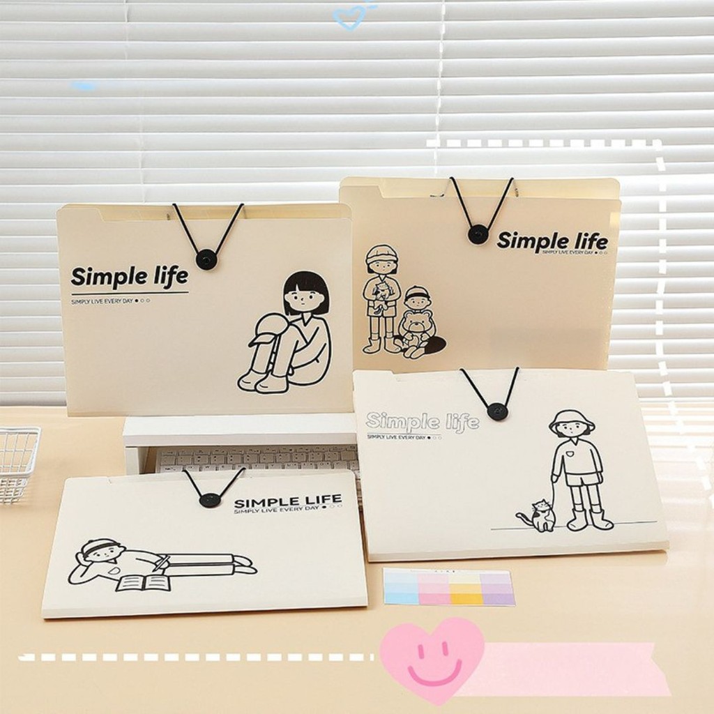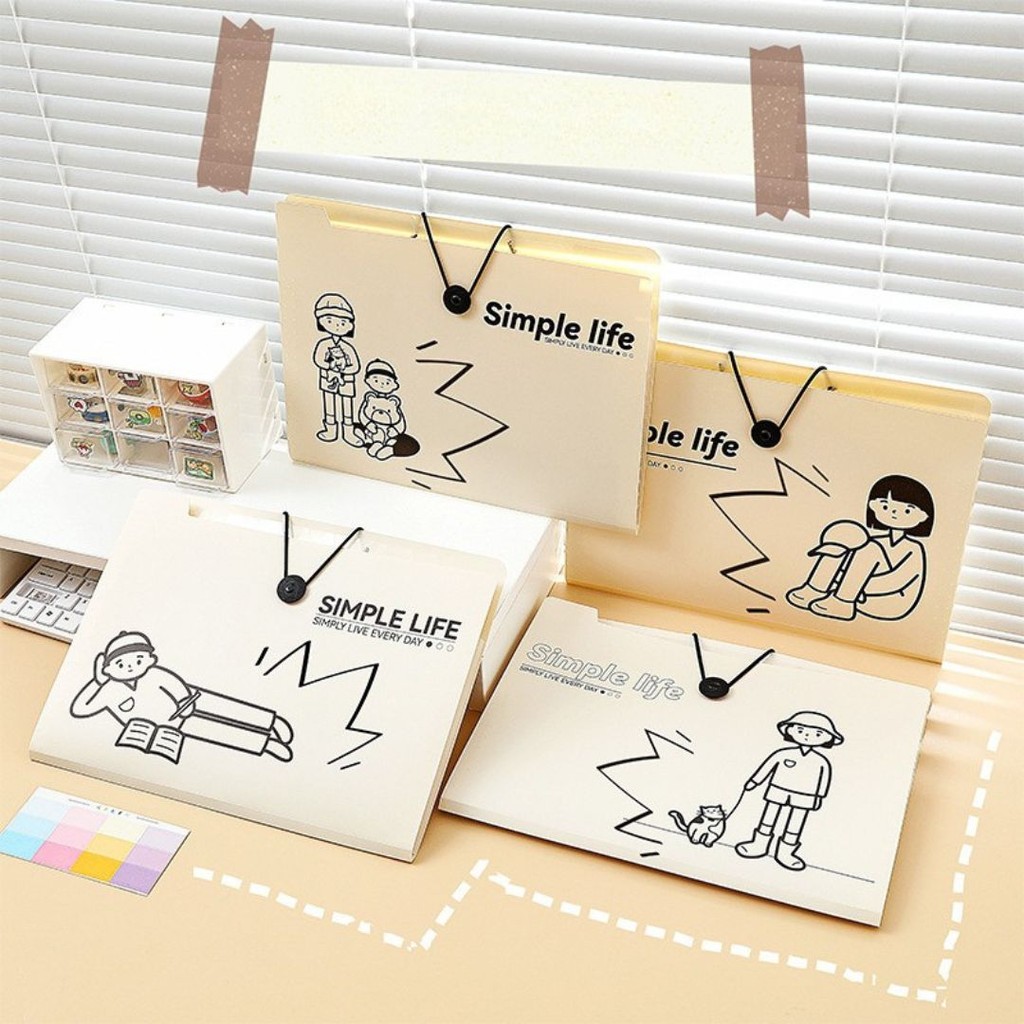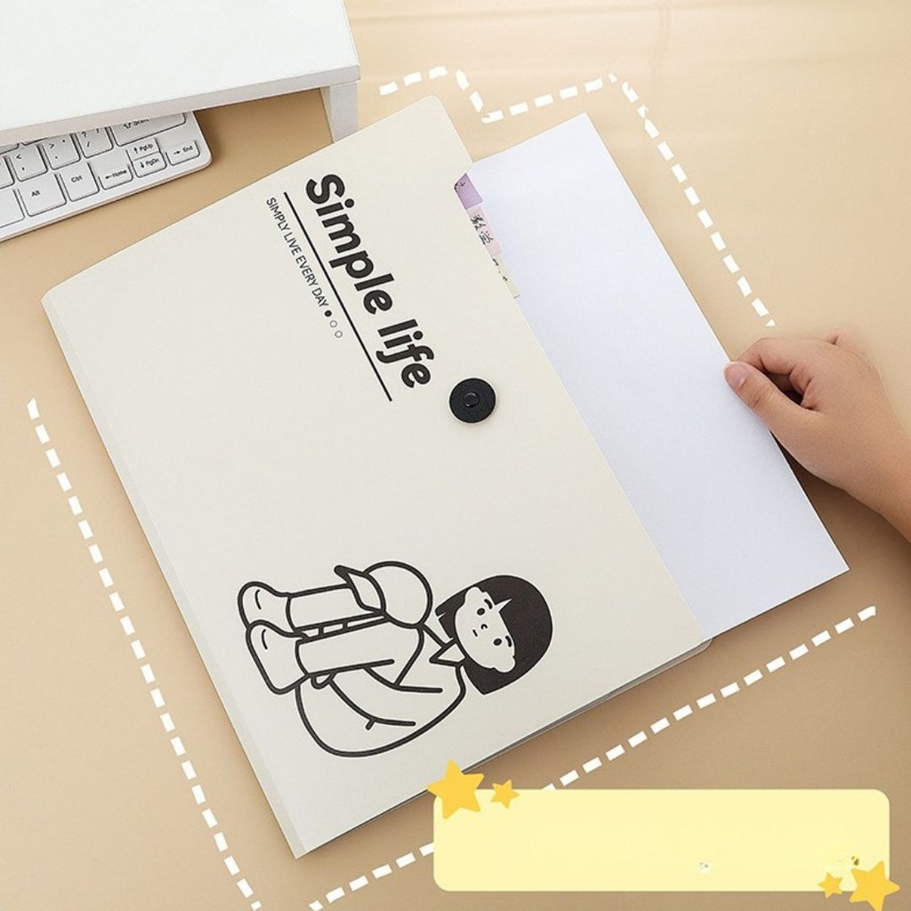 TOPER Tas File A4 8 dan 12 Sekat Index Cute Document Bag Map Folder Organizer Index Expanding Simple Life