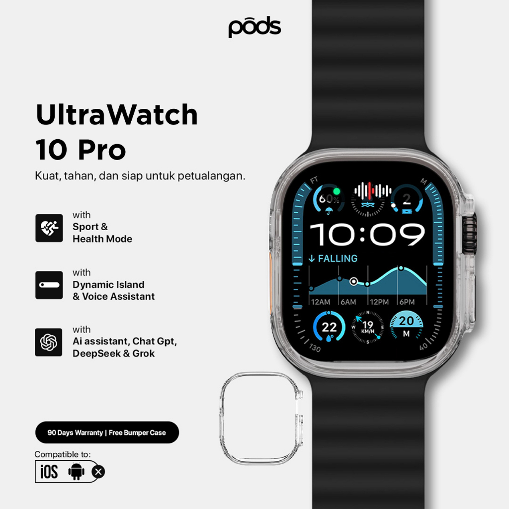 UltraWatch 10 Pro Bluetooth Smartwatch Ultra Amoled 49mm – IP68 Waterproof Infinite Display 2.01 Resistant NFC - by s