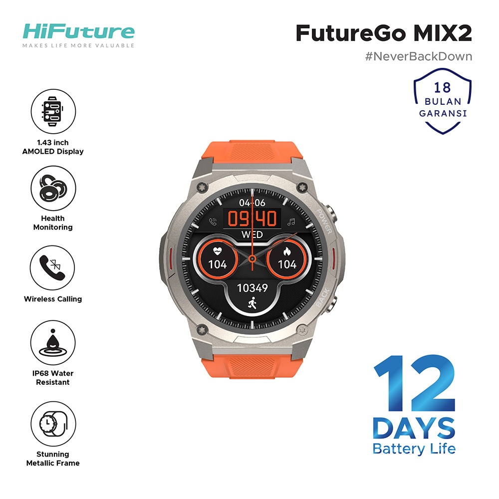 FutureGo Mix2 Wireless Calling Smartwatch AMOLED Display 1.43" Health Monitor Metallic Frame IP68