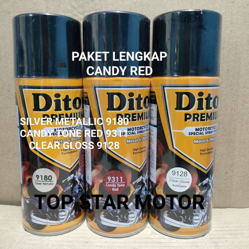Pilok Paket Lengkap Cat Diton Premium Silver Metallic 9180 Candy Tone Red 9311 Clear Gloss 9128 400cc.. Pilok Paketan Ca