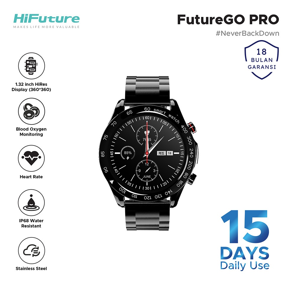FutureGo Pro Bluetooth Calling Smartwatch Stainless FHD HiRes Display 1.32" Health Monitor IP68