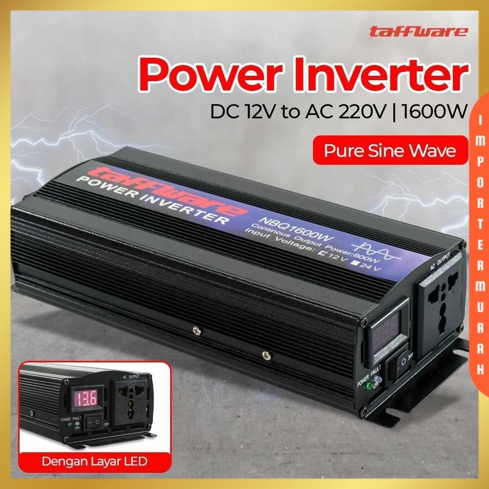 Taffware Power Inverter Mobil Pure Sine Wave DC 12V to AC 220V 1600W - NBQ1600W