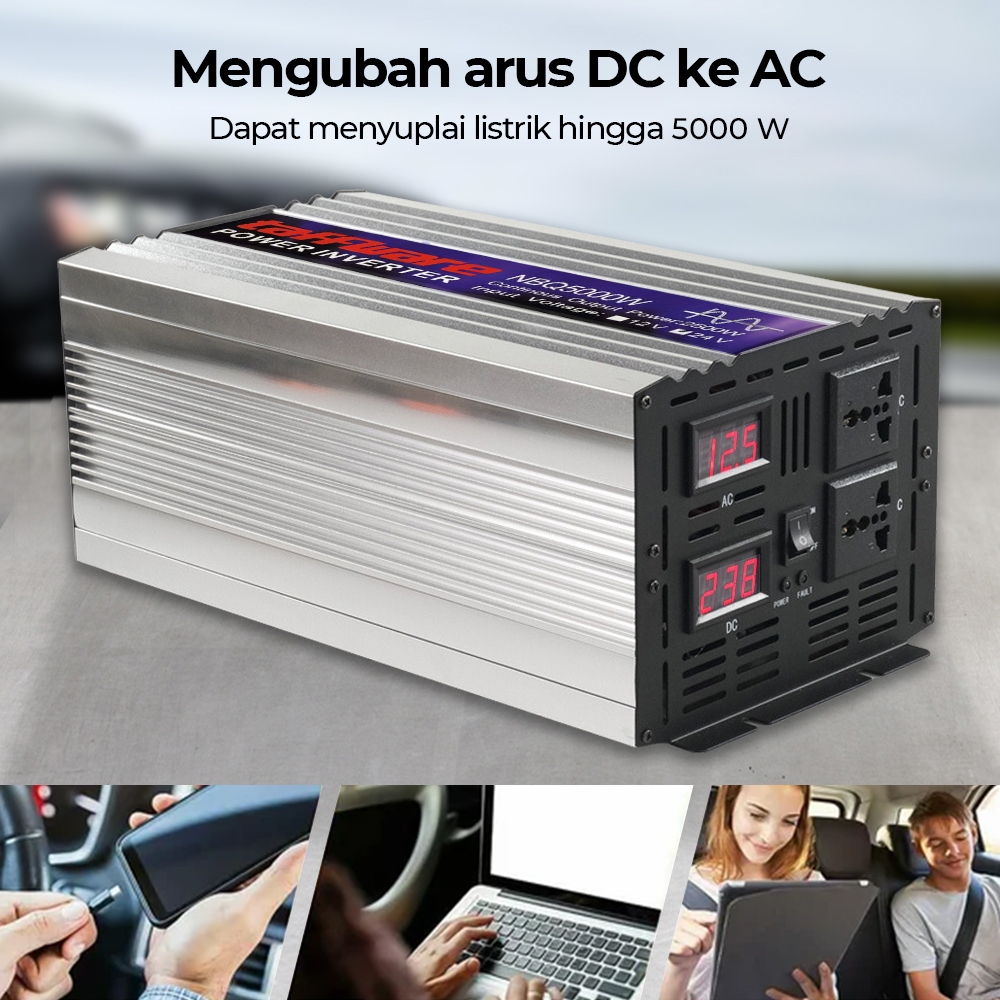 Taffware Power Inverter Mobil Pure Sine Wave DC 24V to AC 220V 5000W - NBQ5000W - Silver