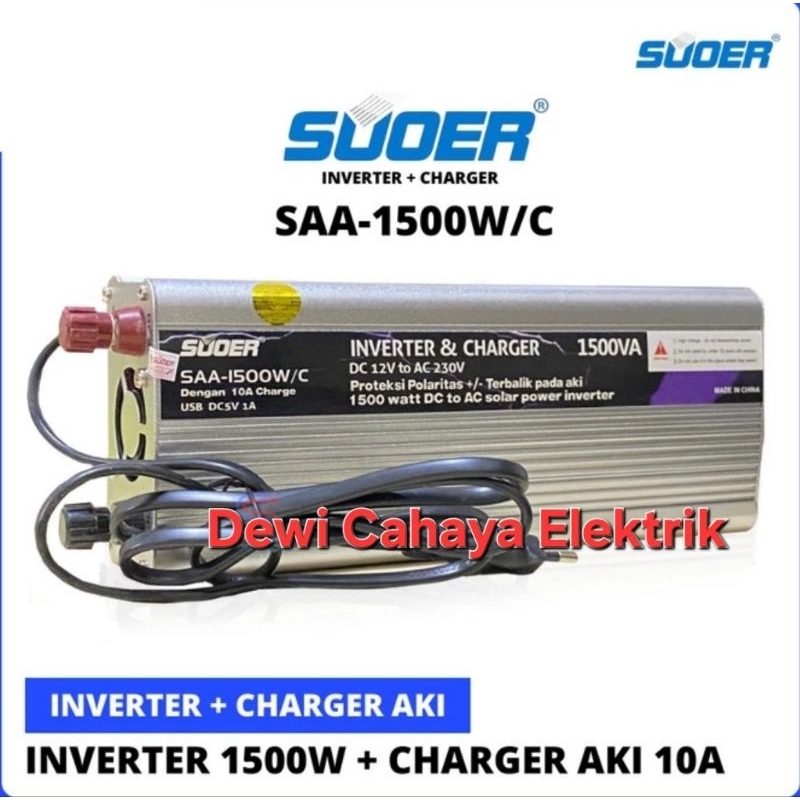 Power Inverter 1500W - 12V Charger Cas AKI 10A SAA-1500W Suoer (2in1) Inverter dan Charger