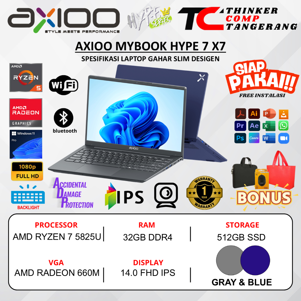 Laptop Baru Axioo Hype 7 X7 Amd Ryzen 7 5825U 32GB 512GB 14 Inch FHD IPS Backligt Keyboard Windows 11