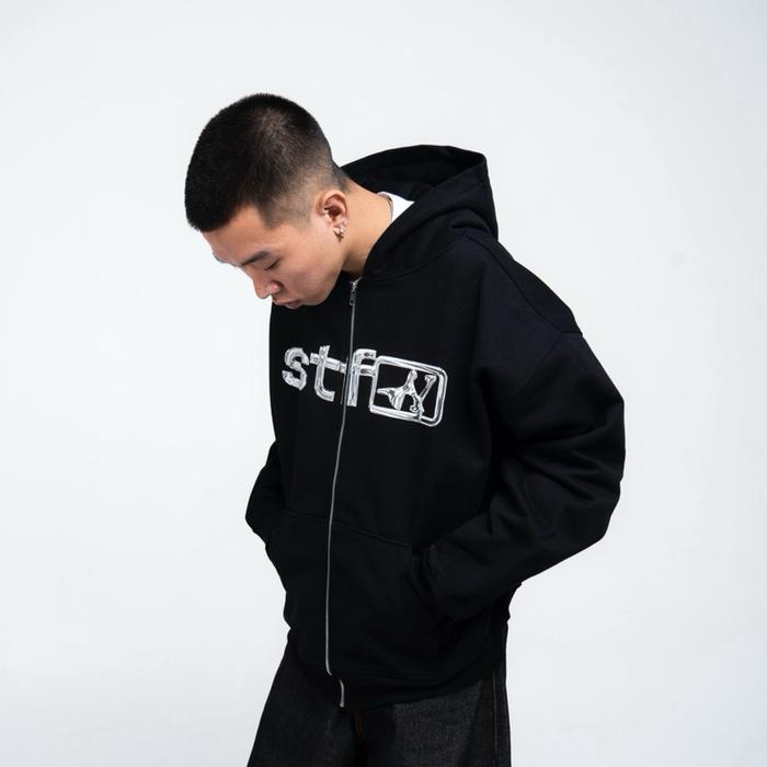 Satisfaction Hoodie Zipper Boxy 375GSM CHROME Black