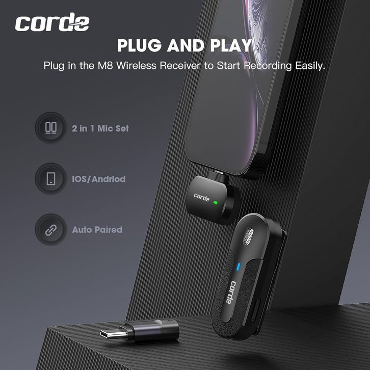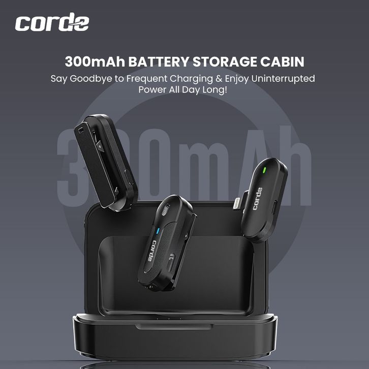 CORDE Microphone Wireless Dual Lavalier + Portable Charging Case with Hi-Fi Audio Original Quality