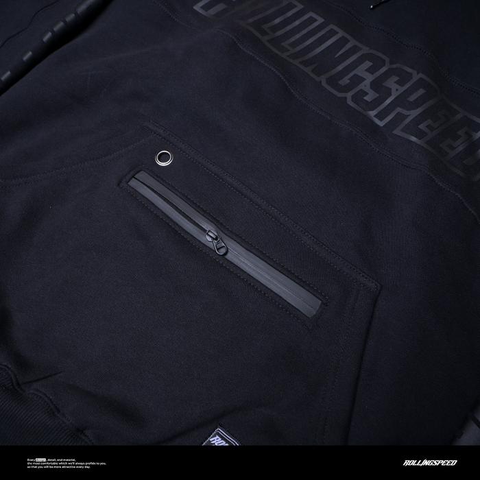 Rollingspeed - Jacket Sweater Hoodie Veil Black - Jaket Tangan Panjang Hitam Fleece Sablon Pria