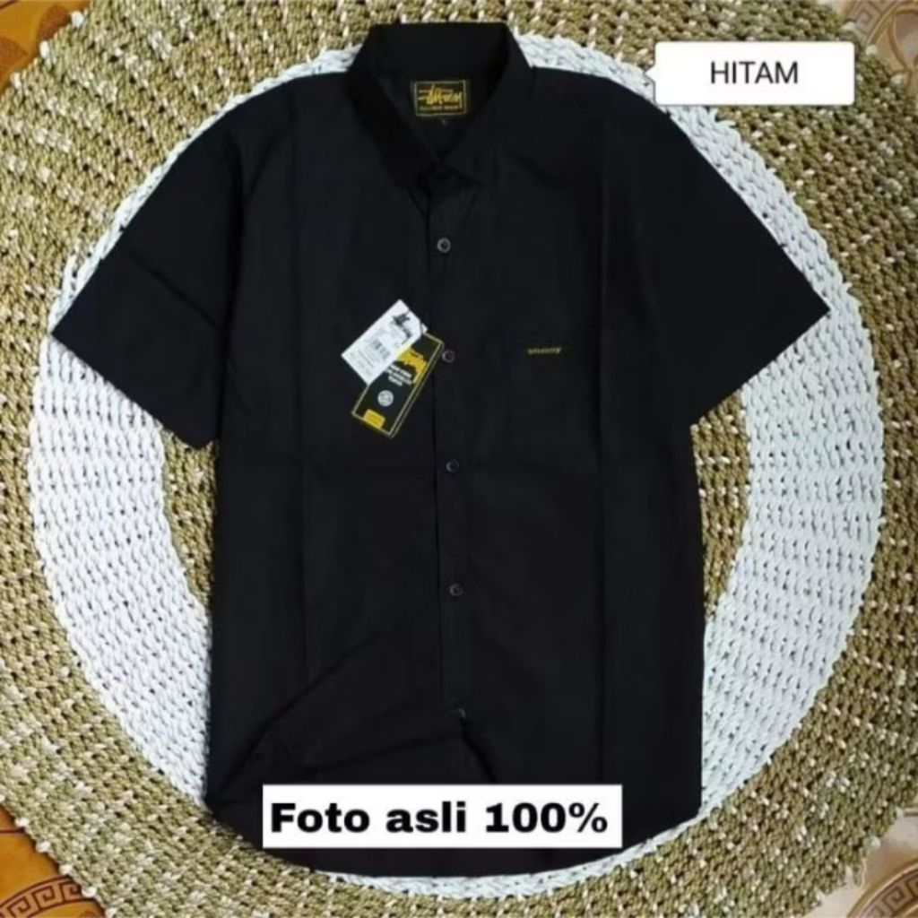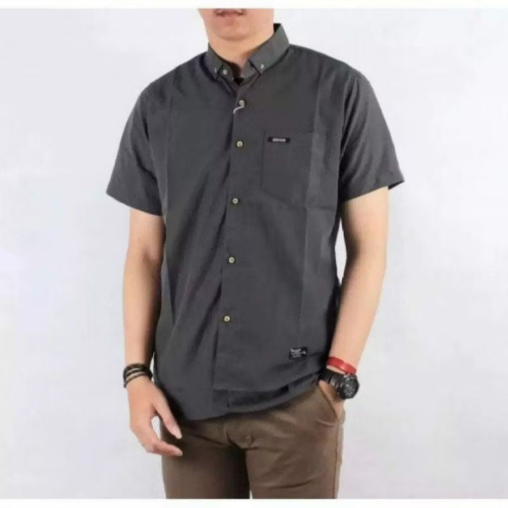 Kemeja Pria Kerah Shanghai Lengan Pendek Slimfit / Kemeja Polos Casual Cowok Kekinian Terbaru