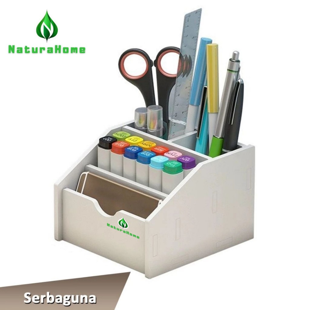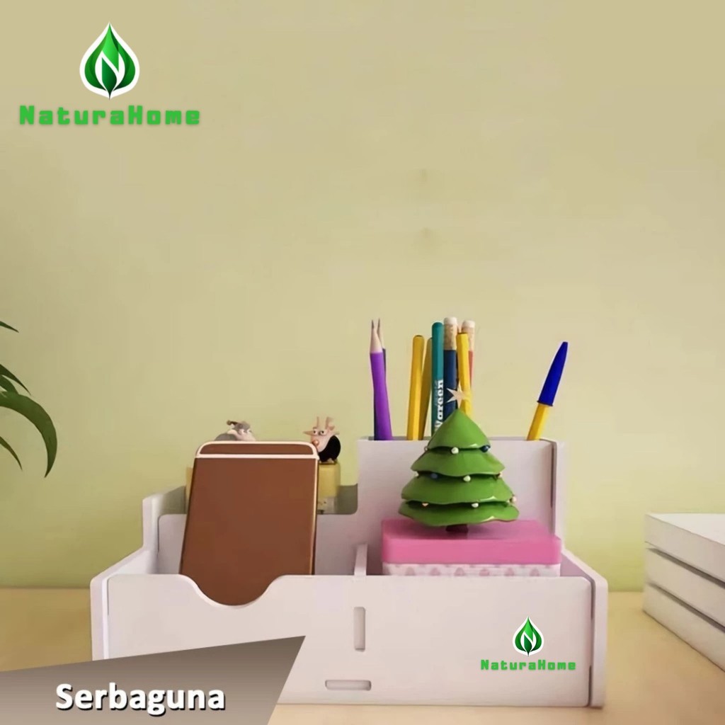 NaturaHome - Rak Desktop Penyimpanan Alat Tulis Tempat Pensil Pulpen Desk Organizer Peralatan Sekolah