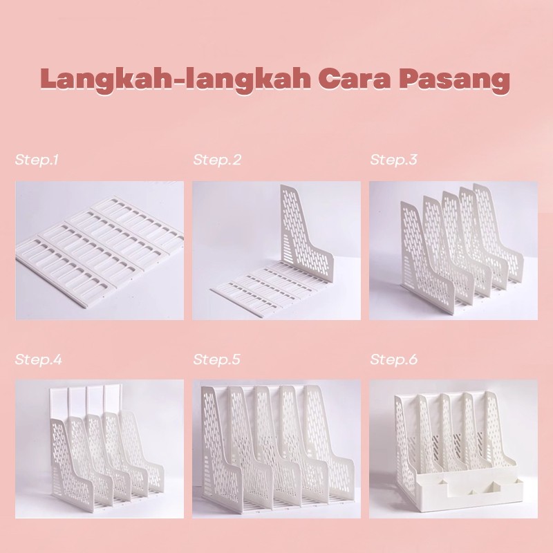 Paus Biru - Rak Buku Organizer File dengan Tempat Pena Box File Tempat Buku Tempat Penyimpanan Berkas Kantor
