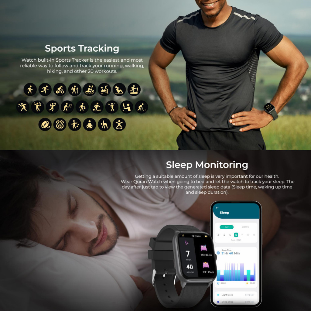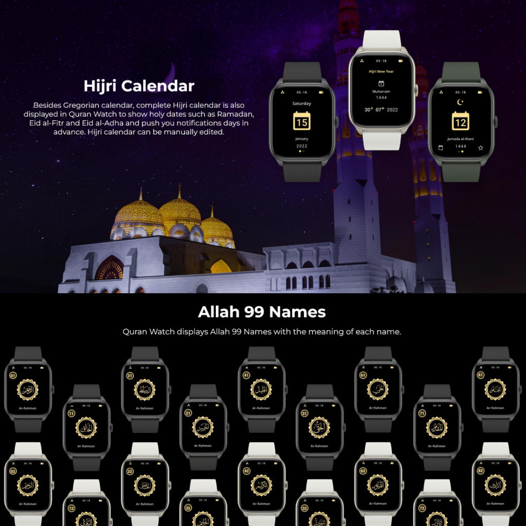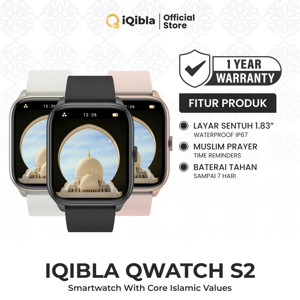 iQibla QWatch S2 1.83 Inch Quran Watch Muslim Smartwatch Bluetooth Phone Call Baterai Tahan Lama Garansi Resmi