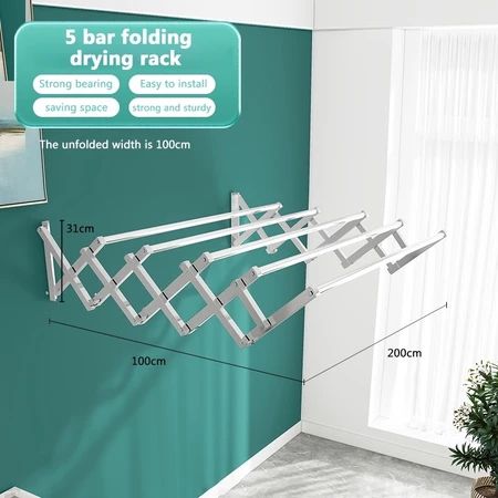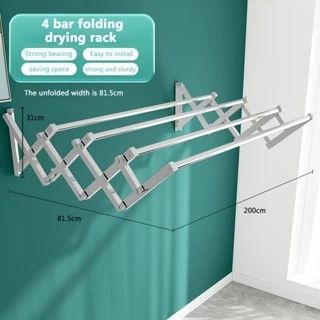 Jemuran Baju Tempel Dinding 200CM Jemuran Lipat Dinding Stainless Steel Jemuran Baju Pakaian Dinding