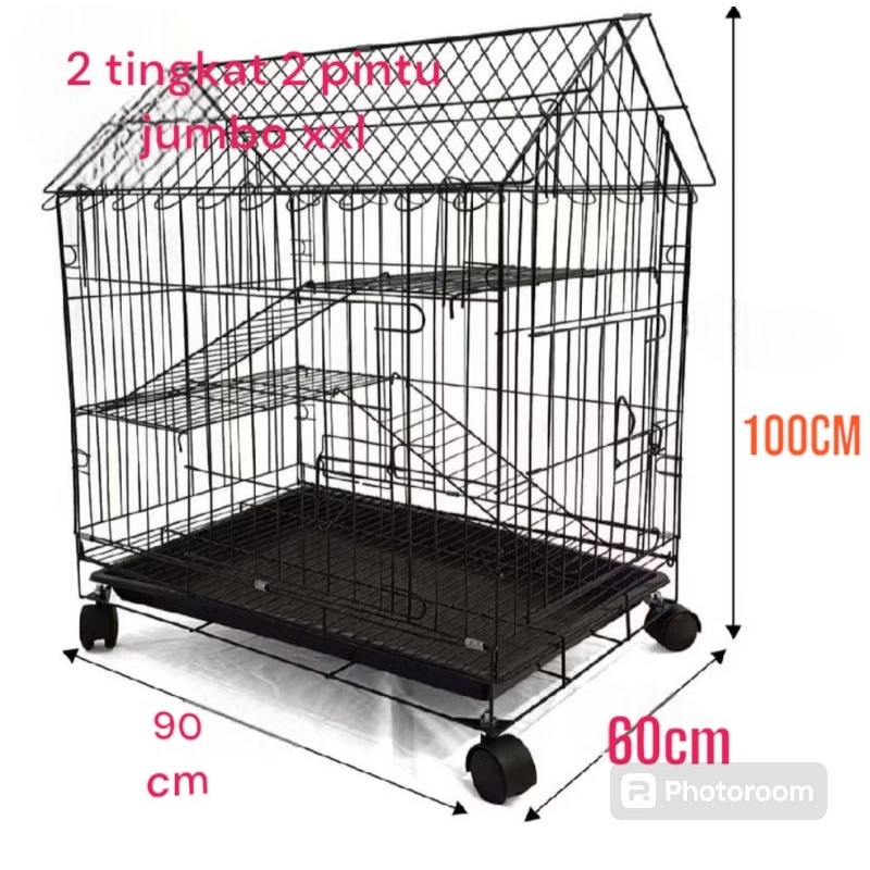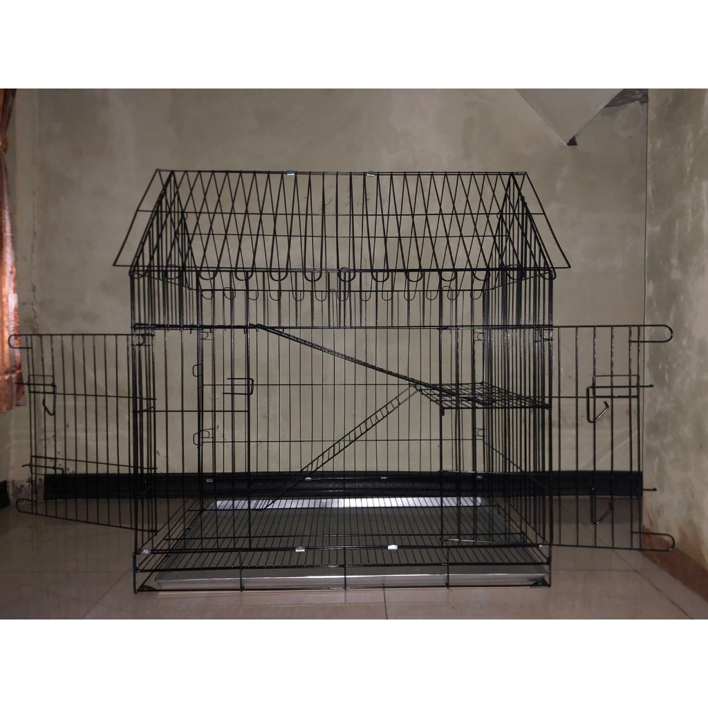 Kandang Kucing 2 Tingkat Atap Rumah ukuran 90x60x100 Musang Hamster Kelinci Tupai Bajing Iguana Garangan Anjing Hewan Pe