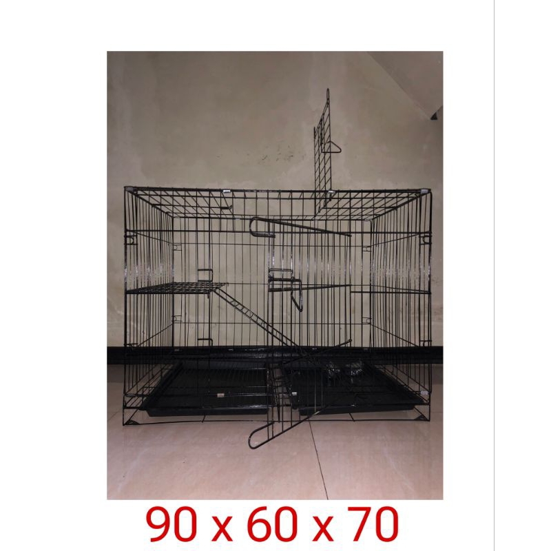 Kandang Kucing Besi Lipat Super Jumbo Size XXL 90x60x70 Cm Bonus Tatakan Alas Sangkar Kandang Ternak