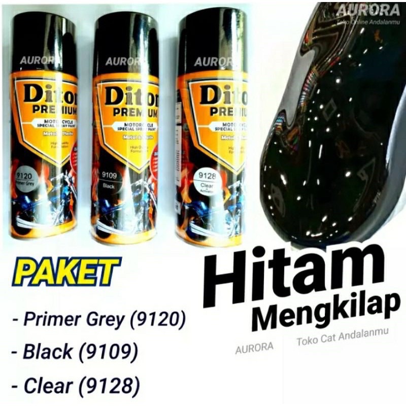 PAKET Diton Premium Black 9109 Hitam Mengkilap 400ml Pilok Tahan Bensin termasuk Epoxy dan Clear Gloss Cat Semprot spray