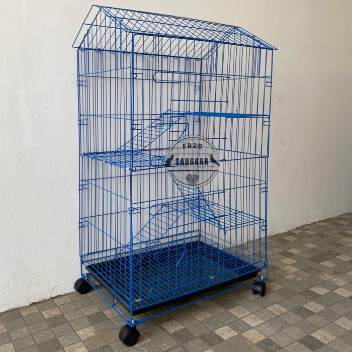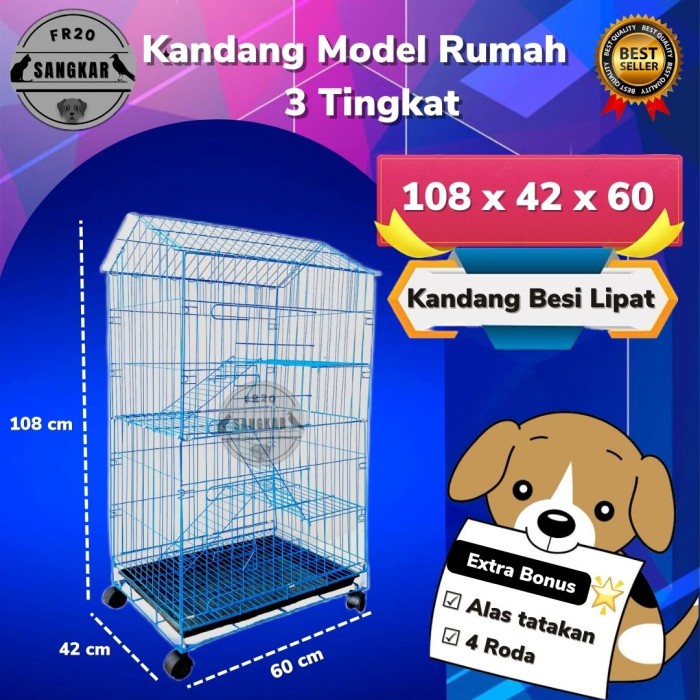 KANDANG HEWAN KUCING ANJING KELINCI 3 TINGKAT + RODA UKURAN 108X42X60 - FRSANGKAR