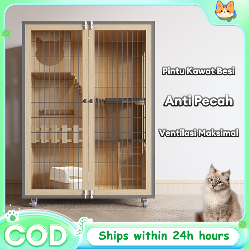 Rumah Kucing Kayu Tahan Gores Model Vila Elegan Kandang Kucing Besar Bisa Dipindah Nyaman dan Kokoh
