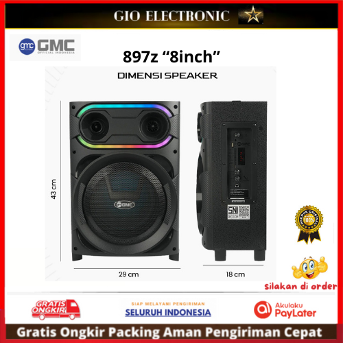 GMC Speaker 897Z – Bluetooth Karaoke Speaker 8" – 120W, USB, SD, AV In, FM Radio, Karaoke Jack