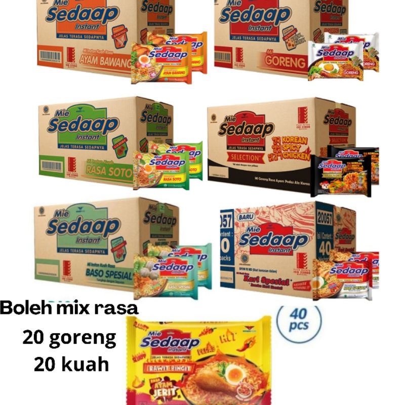 Mie SEDAAP 1 Dus Goreng & Kuah 40pcs || Mie Sedap Karton mix rasa || Mie Sedaap Mix Rasa