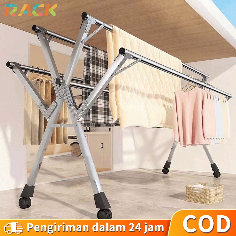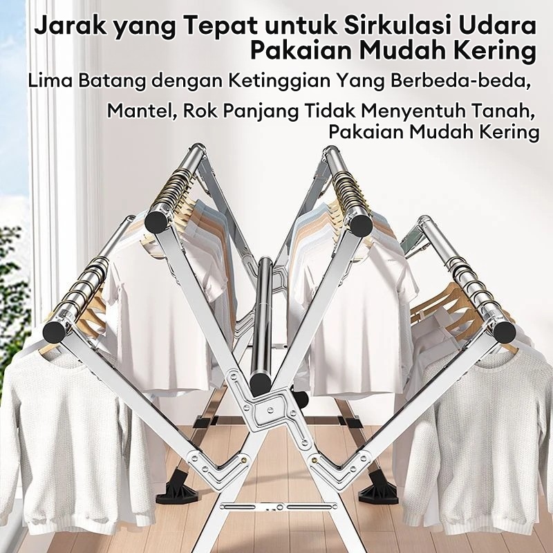 5 Tiang Jemuran Pakaian Anti Karat Kuat Tempat Jemuran Baju Lipat Jemuran Baju Portable Stainles