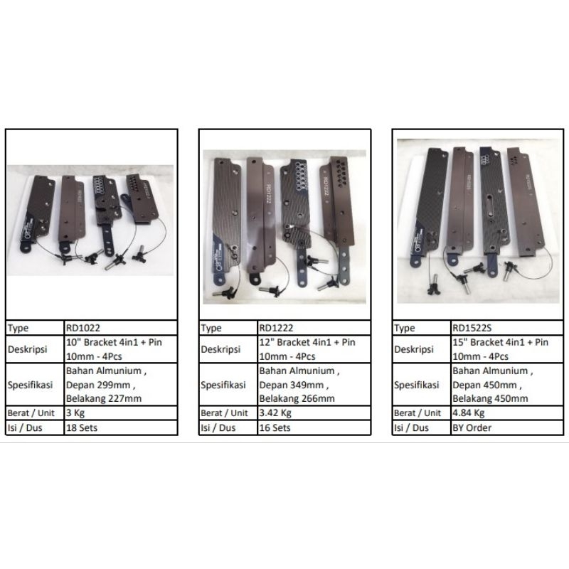 bracket line array RD1022 box aray speaker 4 in 1 + pin 10 mm 4 pcs import tinggi depan 299 mm belakang 227 mm