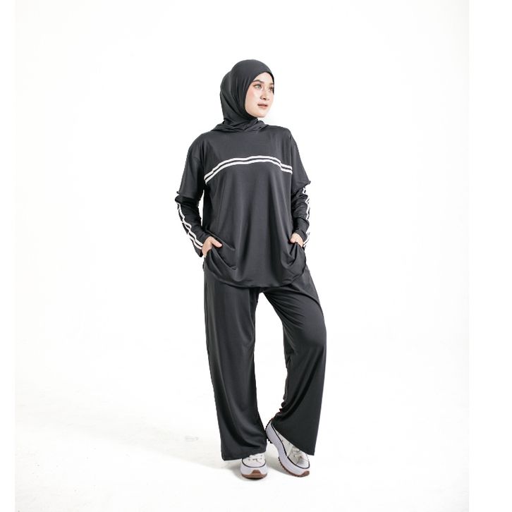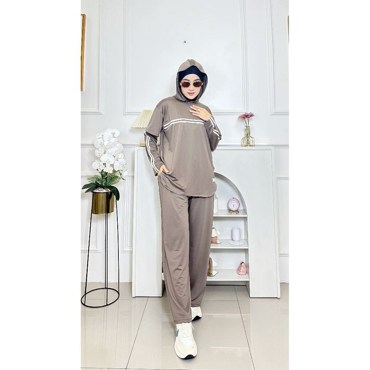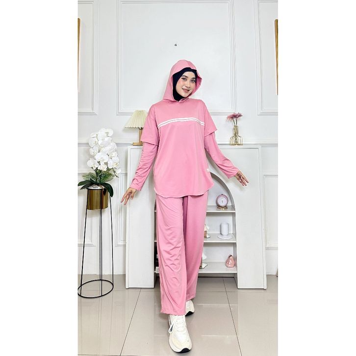 One Set Hoodie Sporty | Bahan Jersey Premium | Setelan Olahraga Wanita | Setelan Olahraga Badminton Senam Lari Bersepeda