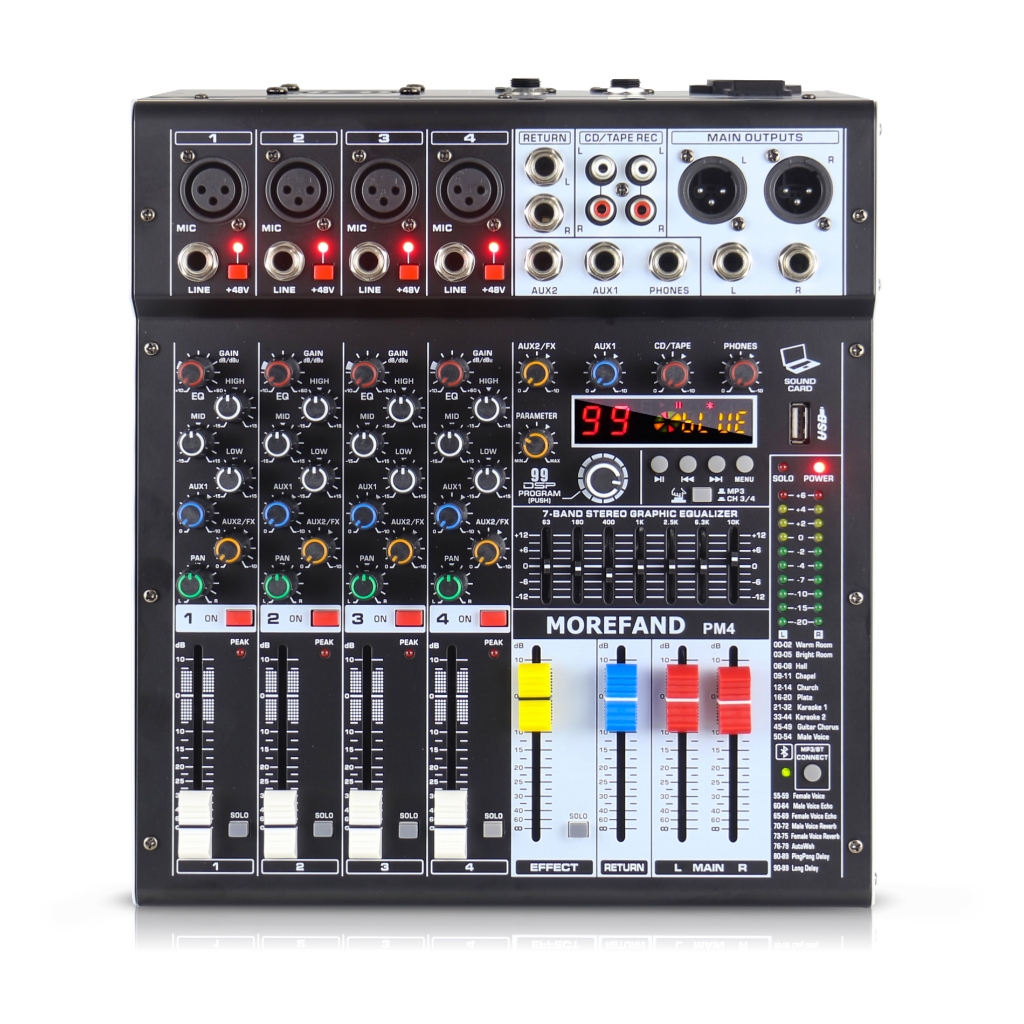 Amplifier Super Kuat PM4 - Bass Gahar Audio Mixer dengan Built-in Amplifier-4-band stereo graphic EQ-99 DSP-3/4 channel-