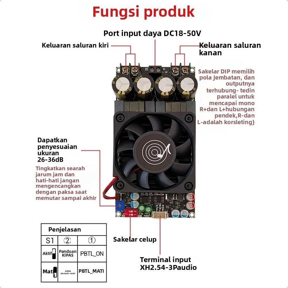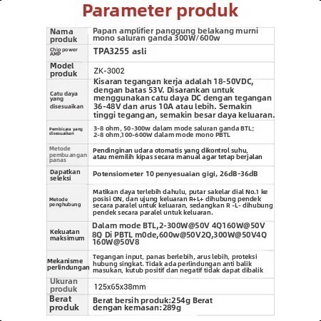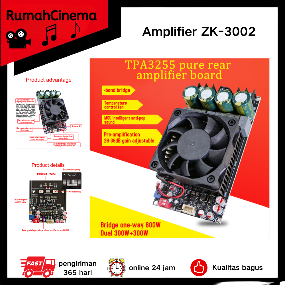 [RumahCinema] [ZK-3002] TPA3255 Amplifier Class D Stereo BTL Bridge Hifi HD Sound High Power Amplifier 600W Original