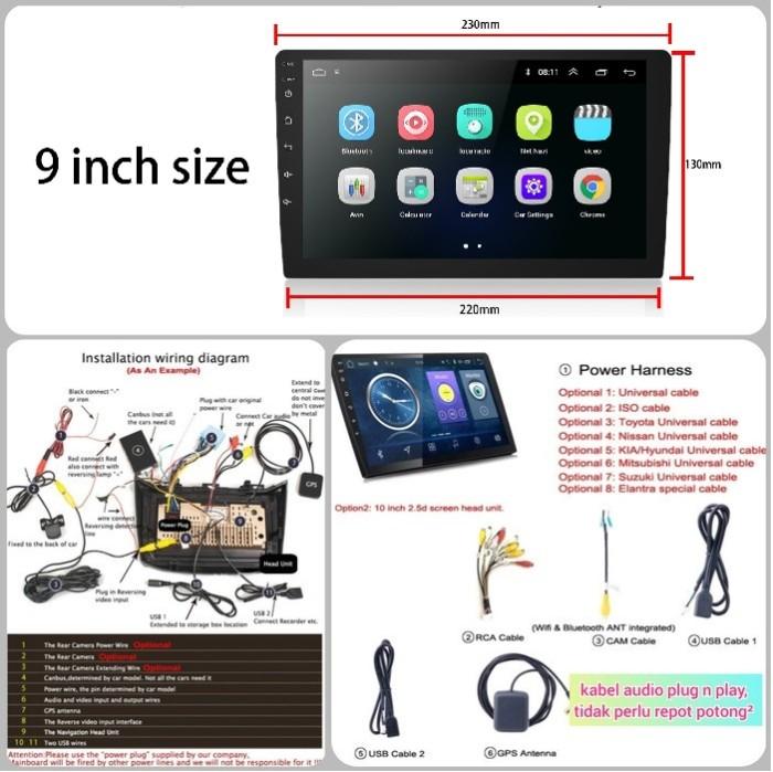 HEADUNIT HEAD UNIT HU ANDROID 9" + FRAME AGYA AYLA 2013 2019 RAM 2GB - s1lverr, ROM 16GB